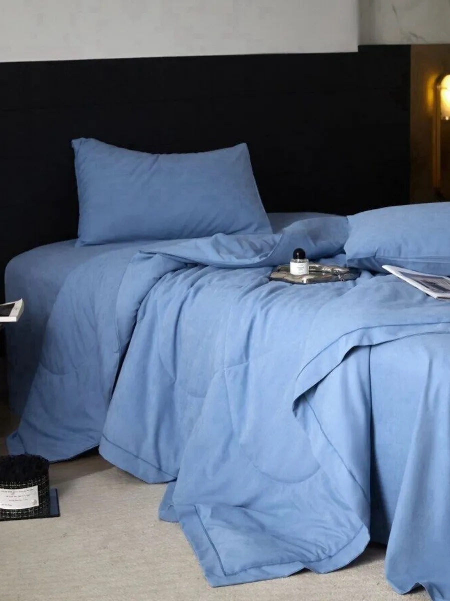 Наша коллекция постельного белья Бархатный-Сатин (хлопок/полиэстер) с Одеялом — это идеальное решение для тех, кто хочет быстро и легко заправить постель. Теперь вам не нужно тратить время на заправку одеяла в пододеяльник, потому что в комплекте есть теплое и мягкое одеяло-покрывало, которое соответствует дизайну комплекта. Наше постельное белье очень мягкое и приятное к телу, что обеспечивает комфортный сон в любое время года. Благодаря натуральному составу оно выдерживает множество стирок и пропускает воздух. Стеганое одеяло-покрывало из бамбукового волокна идеально подходит для людей с чувствительной кожей, так как имеет антибактериальные свойства, которые сохраняются даже после многих стирок. Это одеяло-покрывало создаст уют и тепло зимой и не будет жарким летом благодаря отличной воздухопроницаемости.