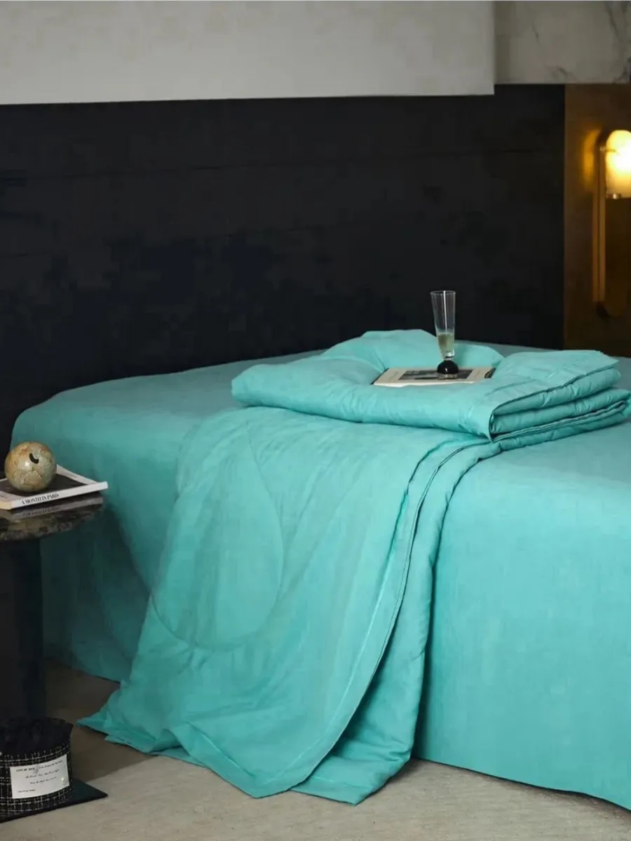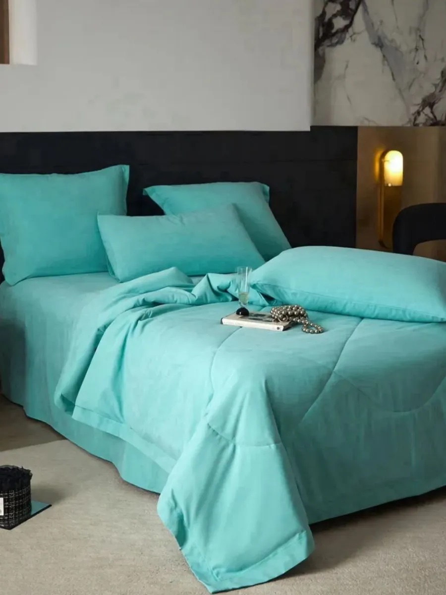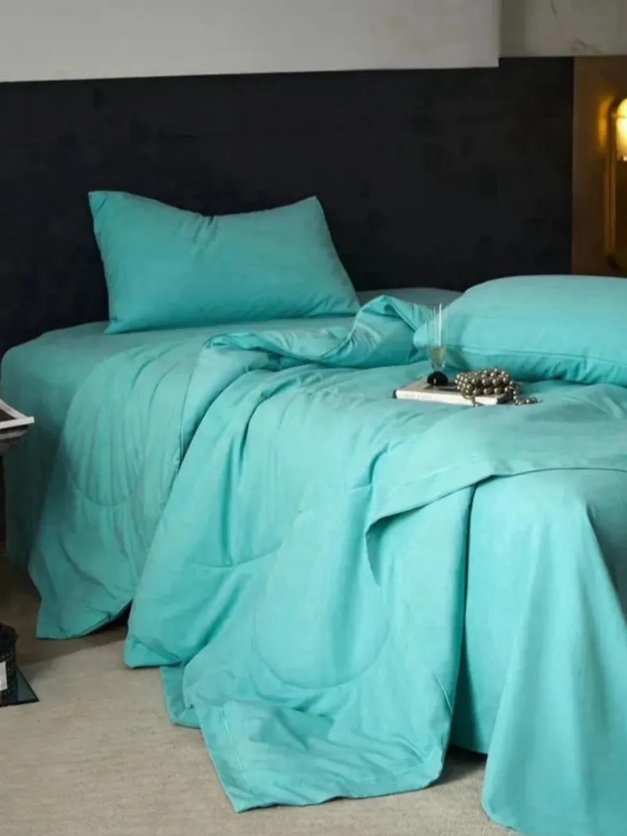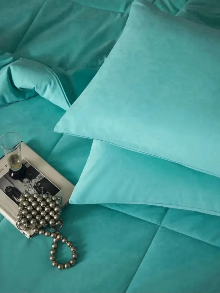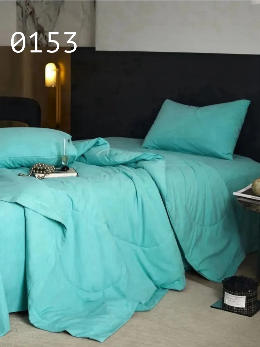 Наша коллекция постельного белья Бархатный-Сатин (хлопок/полиэстер) с Одеялом — это идеальное решение для тех, кто хочет быстро и легко заправить постель. Теперь вам не нужно тратить время на заправку одеяла в пододеяльник, потому что в комплекте есть теплое и мягкое одеяло-покрывало, которое соответствует дизайну комплекта. Наше постельное белье очень мягкое и приятное к телу, что обеспечивает комфортный сон в любое время года. Благодаря натуральному составу оно выдерживает множество стирок и пропускает воздух. Стеганое одеяло-покрывало из бамбукового волокна идеально подходит для людей с чувствительной кожей, так как имеет антибактериальные свойства, которые сохраняются даже после многих стирок. Это одеяло-покрывало создаст уют и тепло зимой и не будет жарким летом благодаря отличной воздухопроницаемости.