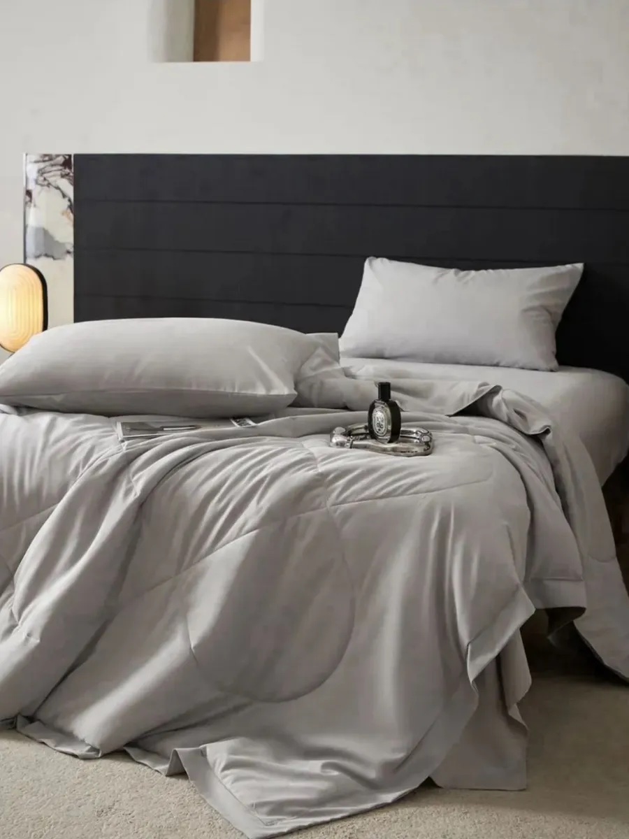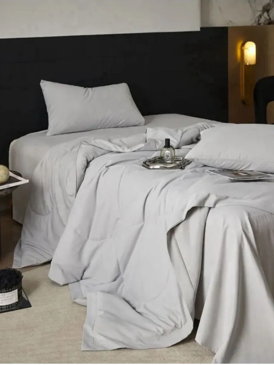 Наша коллекция постельного белья Бархатный-Сатин (хлопок/полиэстер) с Одеялом — это идеальное решение для тех, кто хочет быстро и легко заправить постель. Теперь вам не нужно тратить время на заправку одеяла в пододеяльник, потому что в комплекте есть теплое и мягкое одеяло-покрывало, которое соответствует дизайну комплекта. Наше постельное белье очень мягкое и приятное к телу, что обеспечивает комфортный сон в любое время года. Благодаря натуральному составу оно выдерживает множество стирок и пропускает воздух. Стеганое одеяло-покрывало из бамбукового волокна идеально подходит для людей с чувствительной кожей, так как имеет антибактериальные свойства, которые сохраняются даже после многих стирок. Это одеяло-покрывало создаст уют и тепло зимой и не будет жарким летом благодаря отличной воздухопроницаемости.